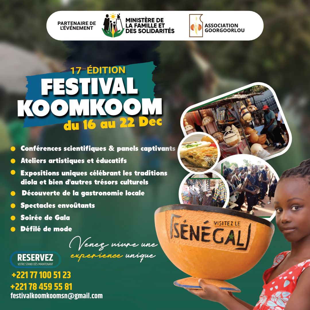 Lancé en 2008 à Ziguinchor, le Festival Koom Koom est devenu un événement majeur, à la fois culturel, touristique et social. Cette rencontre annuelle se distingue par son rôle fédérateur, réunissant un large éventail d’acteurs de la Grappe TICAE (Tourisme, Industries Culturelles et des Arts et de l’Événementiel)